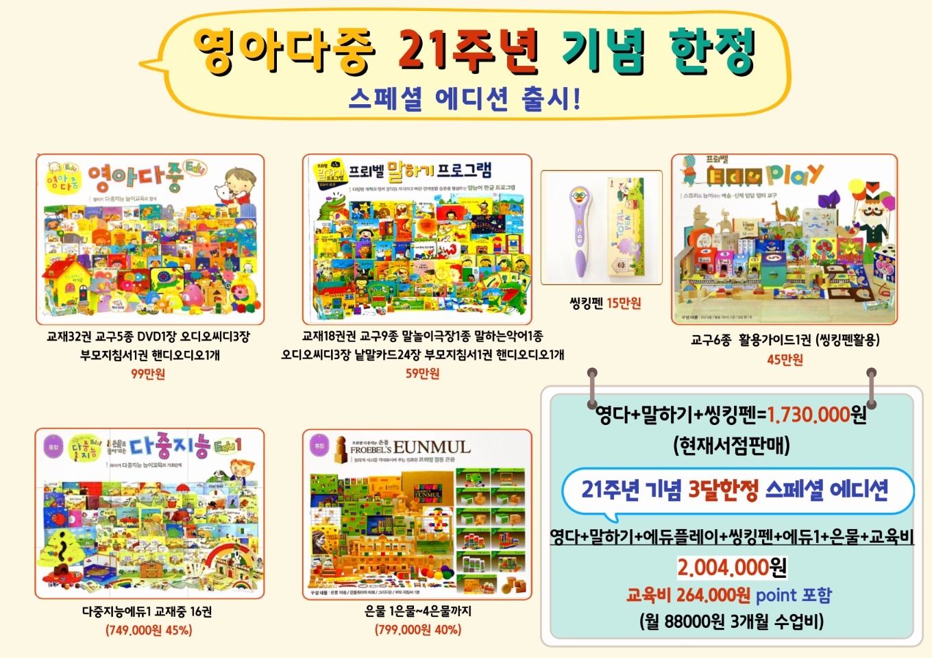 영다 +말하기+에듀플레이+씽킹펜+에듀1+은물+교육비 3개월치 = 2,004,000원…???